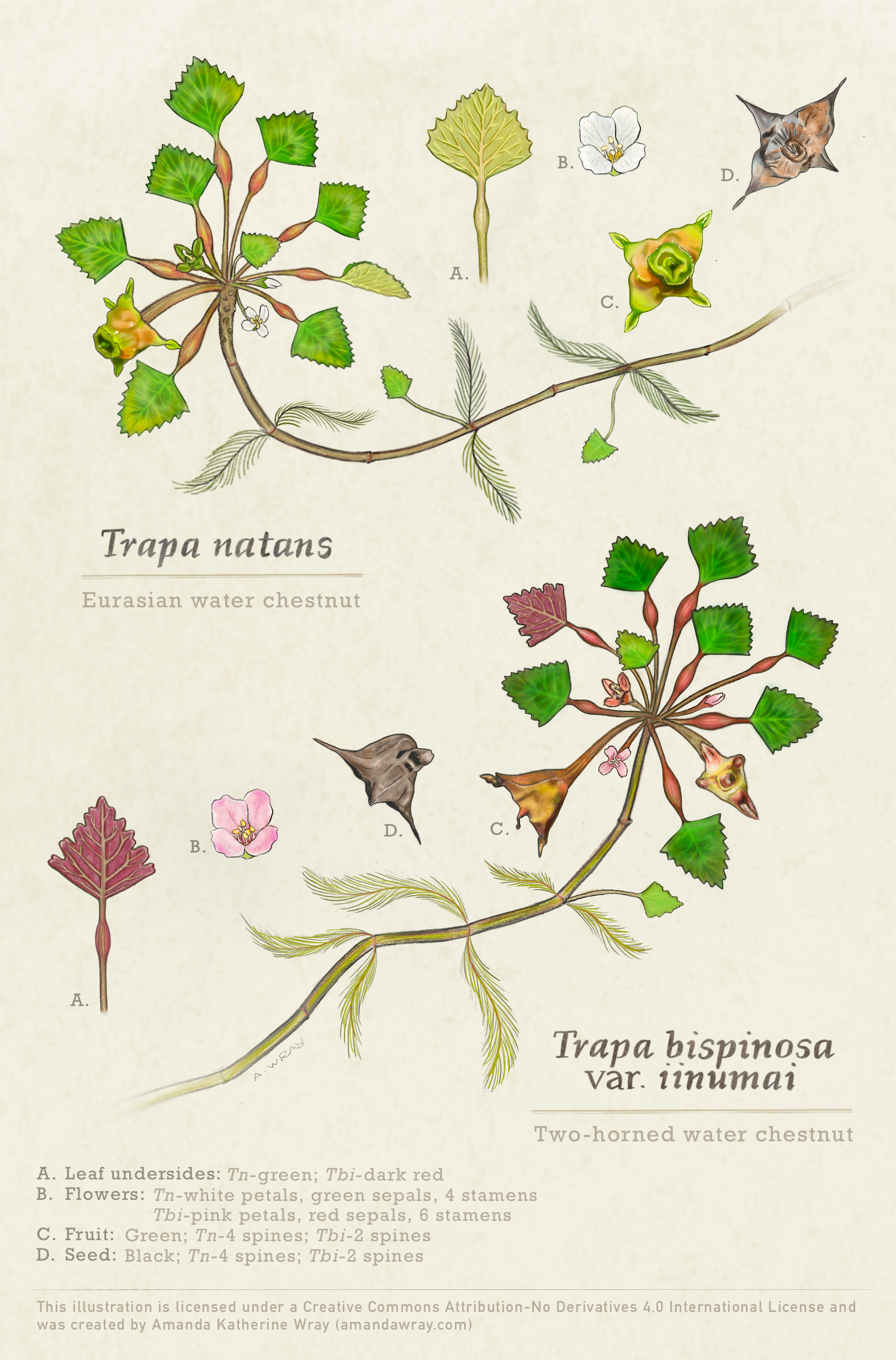 Invasive Trapa Botanical Illustration